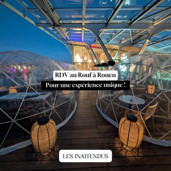 Vous cherchez une expérience originale pour débuter l'année ? Participez au Cocktail en Hauteur, une soirée conviviale sur le rooftop du Rouf à Rouen. Profitez d’une vue panoramique exceptionnelle tout en restant au chaud dans des bulles transparentes.